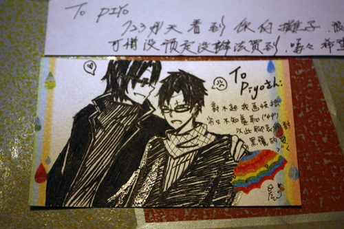 這次也收到了人家送的食物,更高興的是收到畫給我的圖了!!